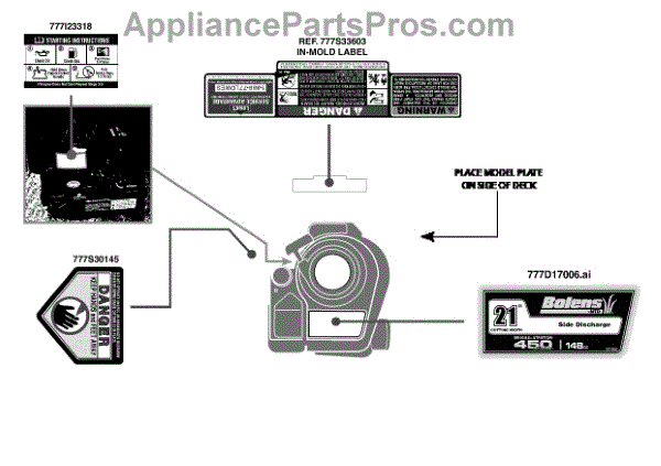 Parts for Bolens 11A-A40M765 / 2012: Label Map 11A-A40m765 Parts