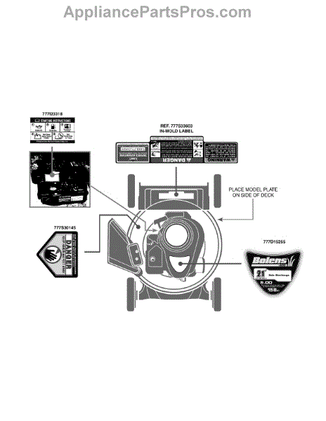 Parts for Bolens 11A-A44R265 / 2011: Label Map 11A-A44r265 Parts