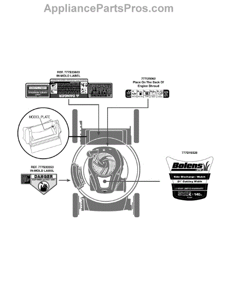 Parts for Bolens 11A-B0BL765 / 2015: Label Map 11A-B0bl765 Parts