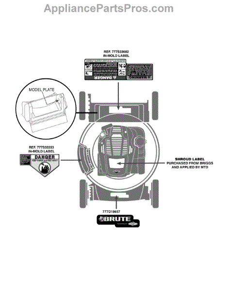 Parts for Brute 11A-A0A9778 / 2015: Label Map 11A-A0a9778 Parts