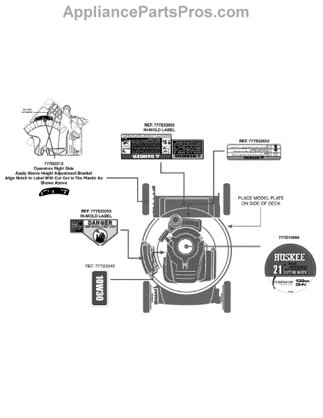 Parts for Huskee / Husky 11A-A0JC031 / 2011: Label Map 11A-A0jc031 Parts