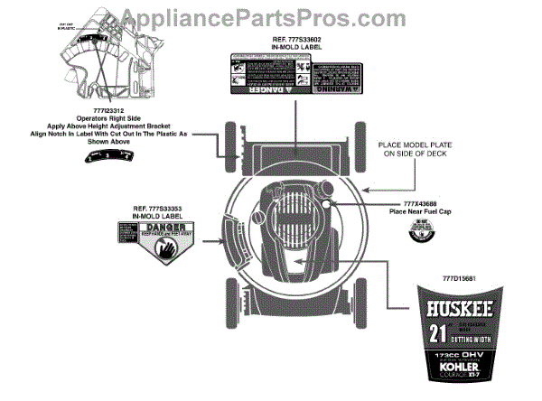 Parts for Huskee / Husky 11A-A0K7231 / 2012: Label Map 11A-A0k7231 Parts