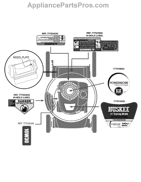 Parts for Huskee / Husky 11A-B0SD731 / 2015: Label Map 11A-B0sd731 Parts