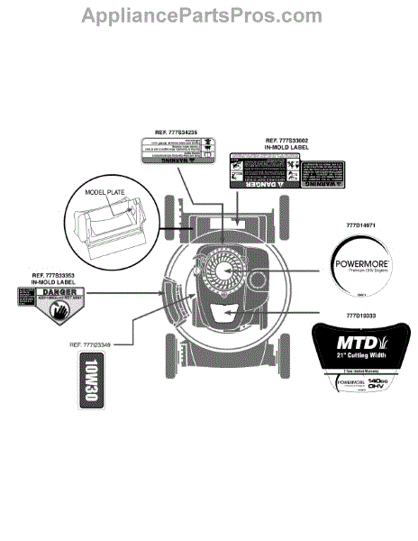 Parts for Mtd 11A-A0S5706 / 2014: Label Map 11A-A0s5706 Parts