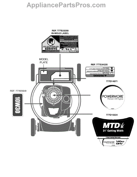 Parts for Mtd 11A-A1S5706 / 2014: Label Map 11A-A1s5706 Parts
