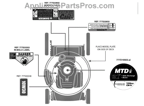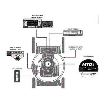 Parts for Mtd 11A-B0JT706 / 2012: Label Map 11A-B0jt706 Parts