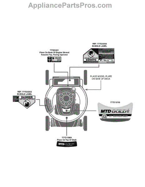 Parts for Mtd Gold 11A-B22Q704 / 2011: Label Map 11A-B22q704 Parts