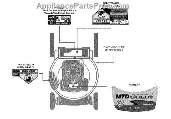 Parts for Mtd Gold 11A-B22Q704 / 2013: Label Map 11A-B22q704 Parts
