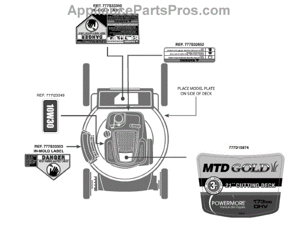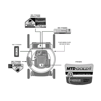 Parts for Mtd Gold 11A-B2J1704 / 2012: Label Map 11A-B2j1704 Parts