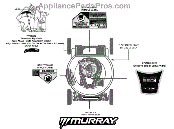 Parts for Murray 11A-A23K758 / 2012: Label Map 11A-A23k758 Parts