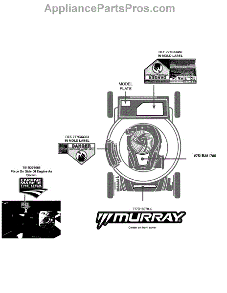 Parts for Murray 11A-A23K758 / 2014: Label Map 11A-A23k758 Parts