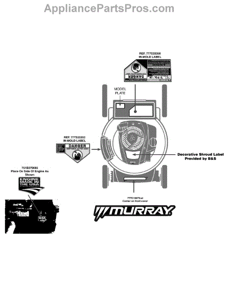 Parts for Murray 11A-B23Z758 / 2014: Label Map 11A-B23z758 Parts