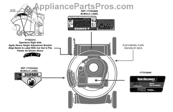 Parts for Yard Machines 11A-A00M700 / 2012: Label Map 11A-A00m700 Parts