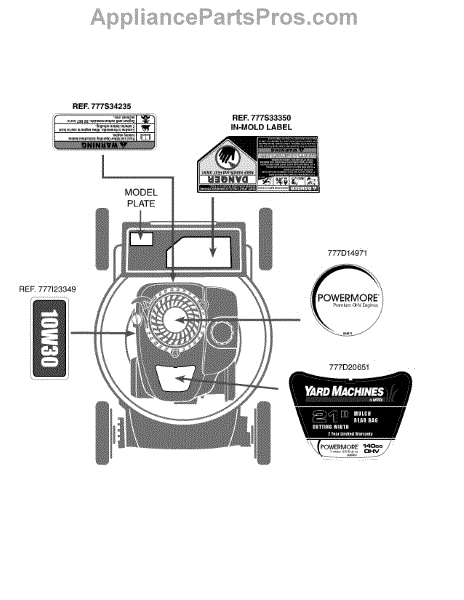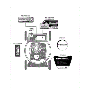 Parts for Yard Machines 11A-A1S5700 / 2015: Label Map 11A-A1s5700 Parts