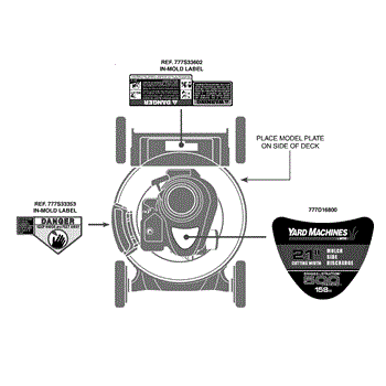 Parts for Yard Machines 11A-A54R729 / 2012: Label Map 11A-A54r729 Parts