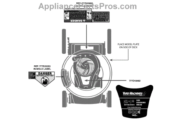 Parts for Yard Machines 11A-B06R700 / 2013: Label Map 11A-B06r700 Parts
