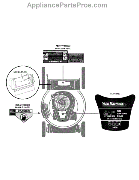 Parts for Yard Machines 11A-B0BL729 / 2015: Label Map 11A-B0bl729 Parts