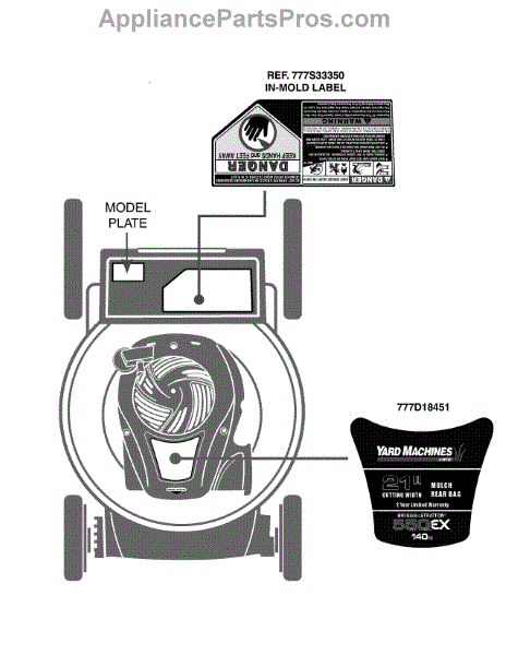 Parts for Yard Machines 11A-B13M729 / 2014: Label Map 11A-B13m729 Parts