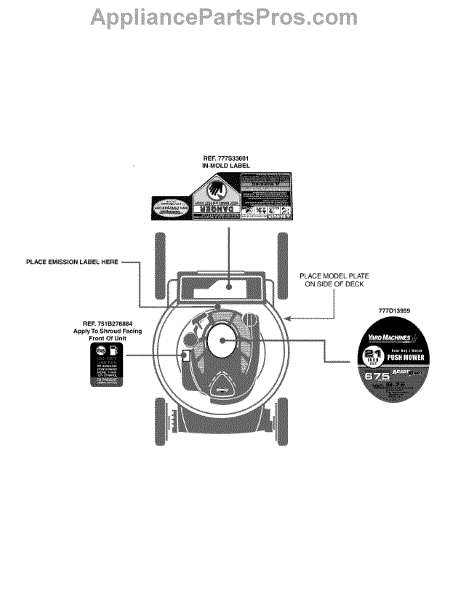 Parts for Yard Machines 11A-B16N229 / 2011: Label Map 11A-B16n229 Parts