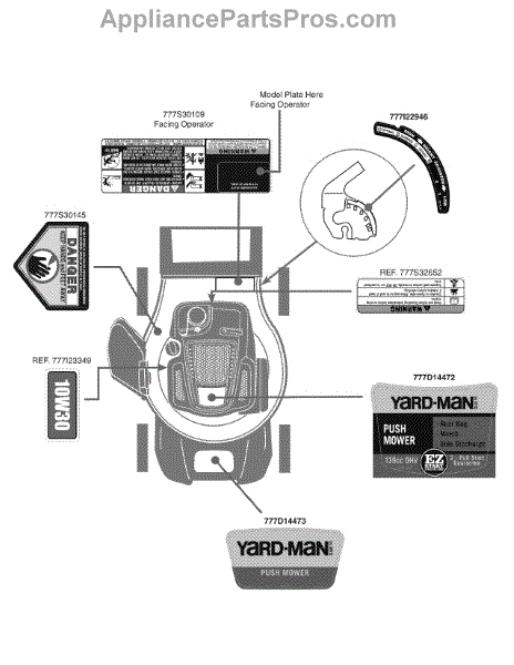 Parts for Yard-Man 11A-18MZ202 / 2010: Label Map 11A-18M Parts