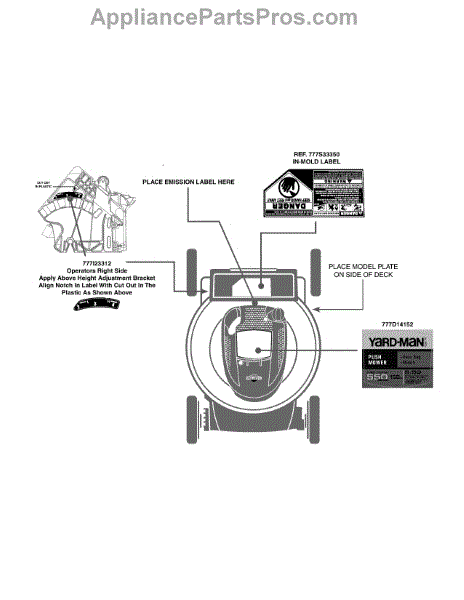 Parts for Yard-Man 11A-A18N255 / 2011: Label Map 11A-A18n255 Parts