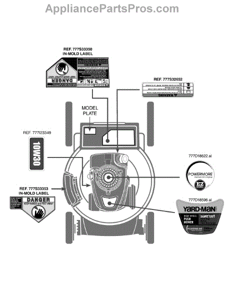 Parts for Yard-Man 11A-B22J701 / 2014: Label Map 11A-B22j701 Parts