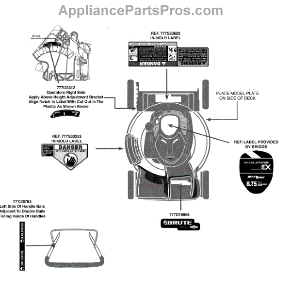 Parts for Brute 12A-A06M078 / 2013: Label Map 12A-A06m078 Parts