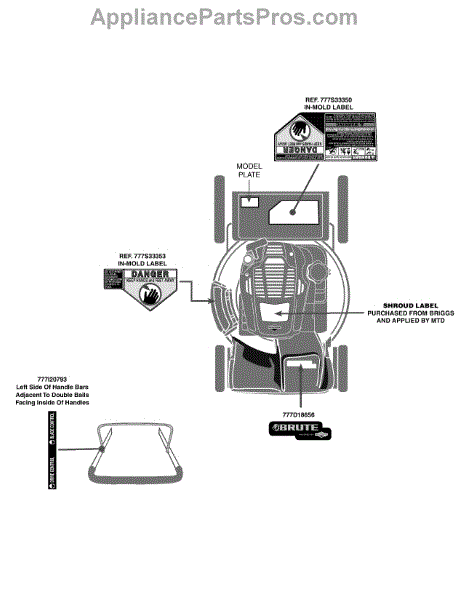 Parts for Brute 12A-B2A3778 / 2015: Label Map 12A-B2a3778 Parts