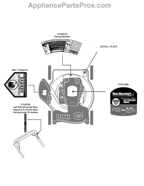 Parts for Yard Machines 12A-264A000 / 2010: Label Map 12A-264A Parts