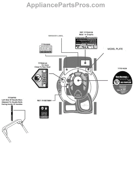 Parts for Yard Machines 12A-464T020 / 2010: Label Map 12A-464 Parts