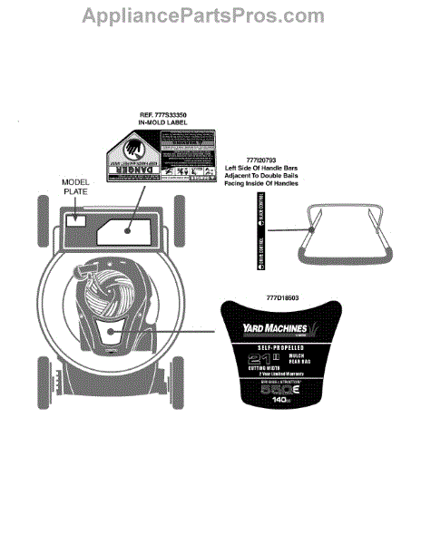 Parts for Yard Machines 12A-A1BA729 / 2014: Label Map 12A-A1ba729 Parts