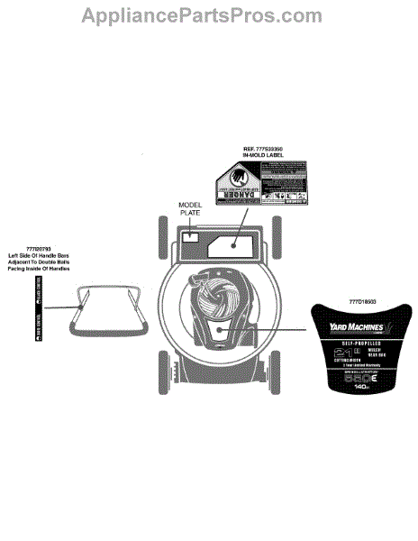 Parts for Yard Machines 12A-A1BA729 / 2015: Label Map 12A-A1ba729 Parts