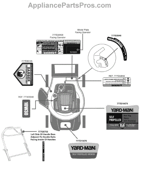 Parts for Yard-Man 12A-18M7002 / 2010: Label Map 12A-18M7 Parts