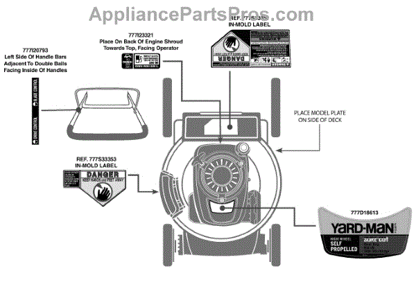 Parts for Yard-Man 12A-B29Q701 / 2013: Label Map 12A-B29q701 Parts
