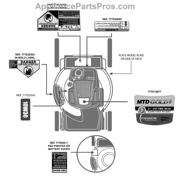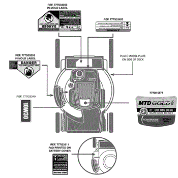 Parts for Mtd Gold 12AGB2JZ704 / 2012: Label Map 12Agb2jz704 Parts