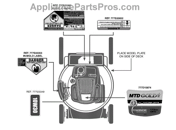 Parts for Mtd Gold 12AVB2M7004 / 2012: Label Map 12Avb2m7004 Parts