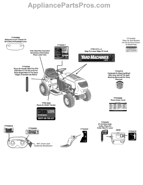 Parts for Yard Machines 13AC762F000 / 2011: Label Map 13Ac762f020 Parts
