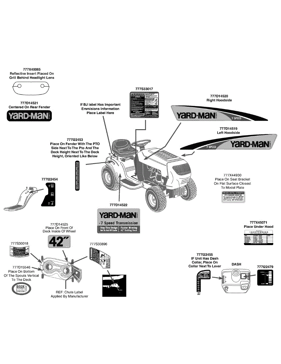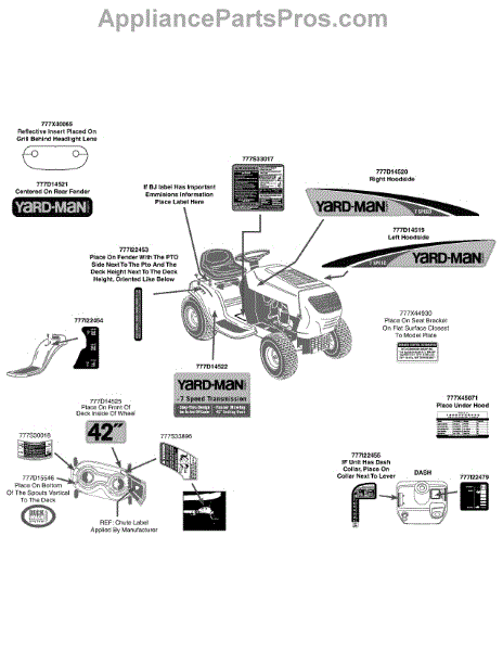 Replacement safety information label for lawn tractors. Restores critical operating instructions when original is faded, peeling, or missing.