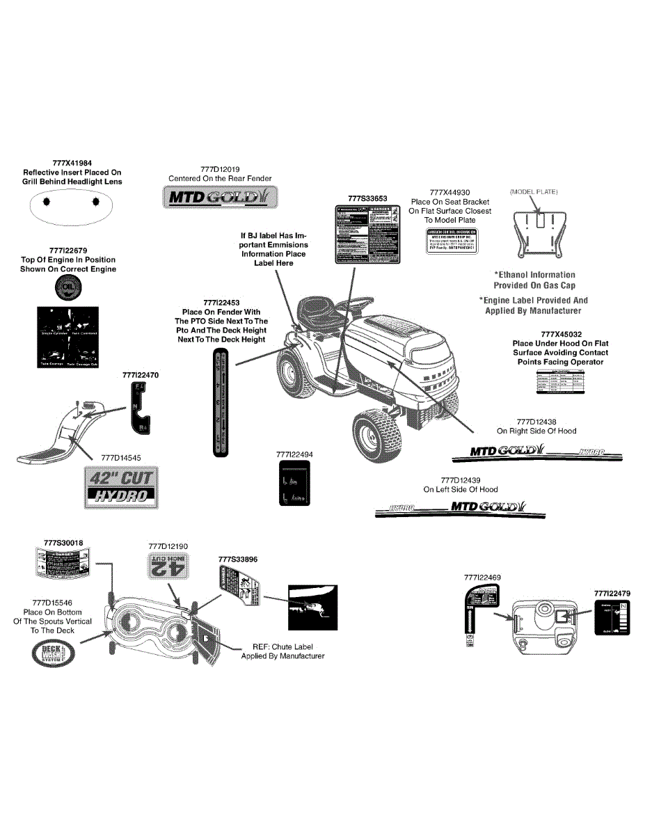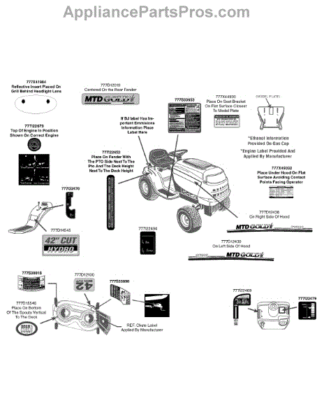 Parts for Mtd Gold 13AX795S004 / 2012: Label Map 13Ax795s004 Parts