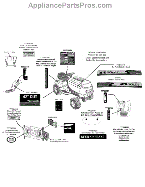 Parts for Mtd Gold 13AX795S004 / 2013: Label Map 13Ax795s004 Parts