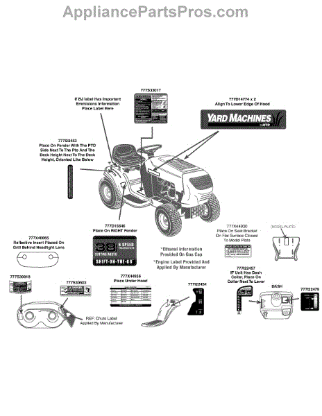 Parts for Yard Machines 13BC762F000 / 2012: Label Map 13Bc762f000 Parts