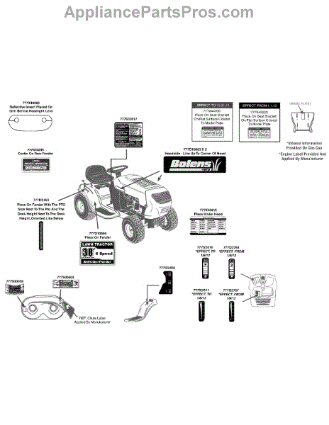Parts for Bolens 13W1762F065 / 2012: Label Map 13W1762f Parts