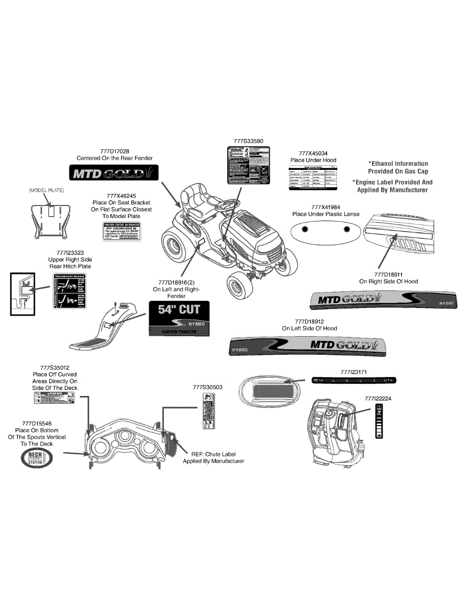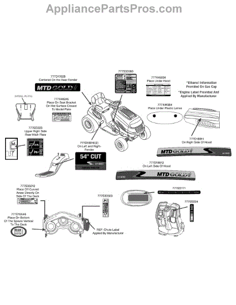 Parts for Mtd Gold 14AK945K004 / 2013: Label Map 14Ak945k004 Parts