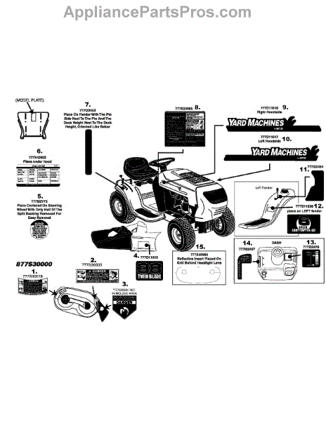 Parts for Yard Machines 13A1762F229 / 2008: Label Map 1762F Parts