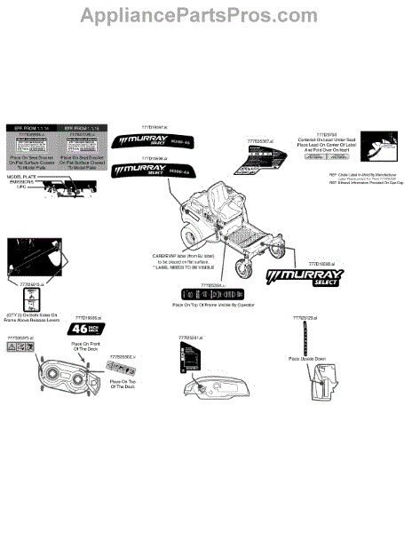 Parts for Murray 17ADCACT058 / 2015: Label Map 17Adcact058 Parts