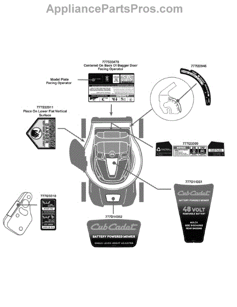 Parts for Cub Cadet Home Maintenance 18A-189 / 2010: Label Map 18A-189 Parts
