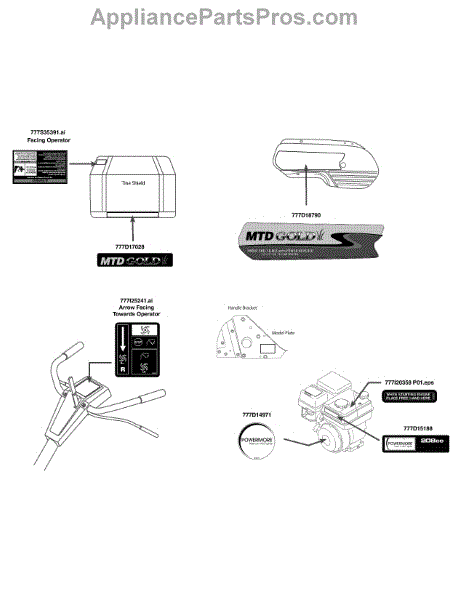 Parts for Mtd Gold 21A-39M8704 / 2015: Label Map 21A-39M8704 Parts