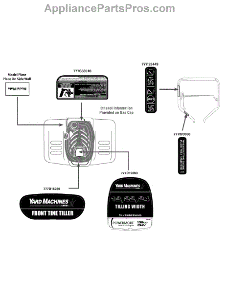 Yard Machines Tiller Parts