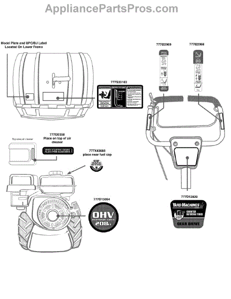 Parts for Yard Machines 21AA40M1052 / 2011: Label Map 21Aa40m1052 Parts