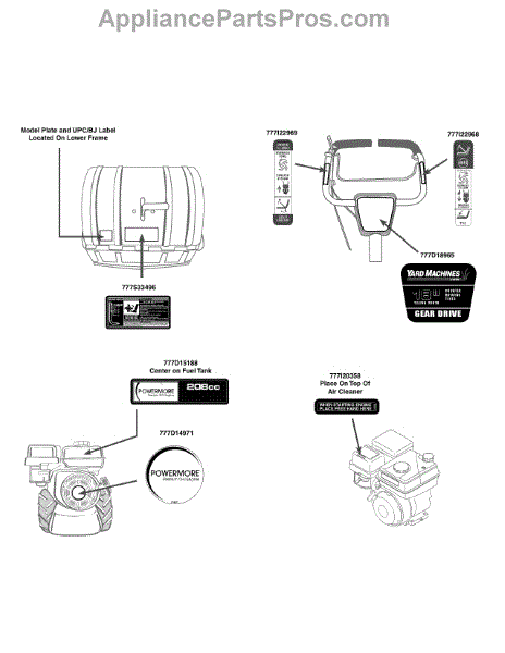 Parts for Yard Machines 21AA40M8700 / 2014: Label Map 21Aa40m8700 Parts